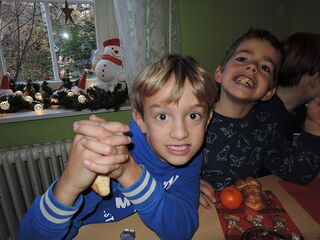Die Kinder wussten sooooo viele Versli und trugen diese mutig vor, so dass der Samichlaus beinahe zu wenig Zeit für alle hatten. Auch durfte er ein frohes Flötenspiel eines Kindes und den Samichlaus- Song vom ganzen Hort geniessen.