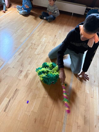 In diesen Ferien begaben wir uns auf eine besondere Reise rund um die Welt. Unter dem Thema „Länder“ entdeckten wir verschiedene Kulturen, Traditionen und spannende Orte. Jeder Tag hielt neue Abenteuer bereit. Ein besonderes Highlight war unser Ausflug ins Museum Tinguely. Dort tauchten wir in eine faszinierende Welt aus bewegten Kunstwerken von Jean Tinguely ein. Überall ratterten, drehten und bewegten sich ungewöhnliche Maschinen – ein Ort voller Überraschungen zum Beobachten, Ausprobieren und Staunen. Unsere Reise führte uns nach Mexiko, wo eine bunte Piniata auf uns wartete. Mit viel Spannung versuchten alle ihr Glück, bis sie endlich aufging und eine große Überraschung herauspurzelte – ein Moment voller Freude! Weiter ging es nach Brasilien. Inspiriert von den leuchtenden Farben bastelten wir kreative Masken und tauchten am Nachmittag in das fröhliche Treiben der Fasnacht Olten ein.